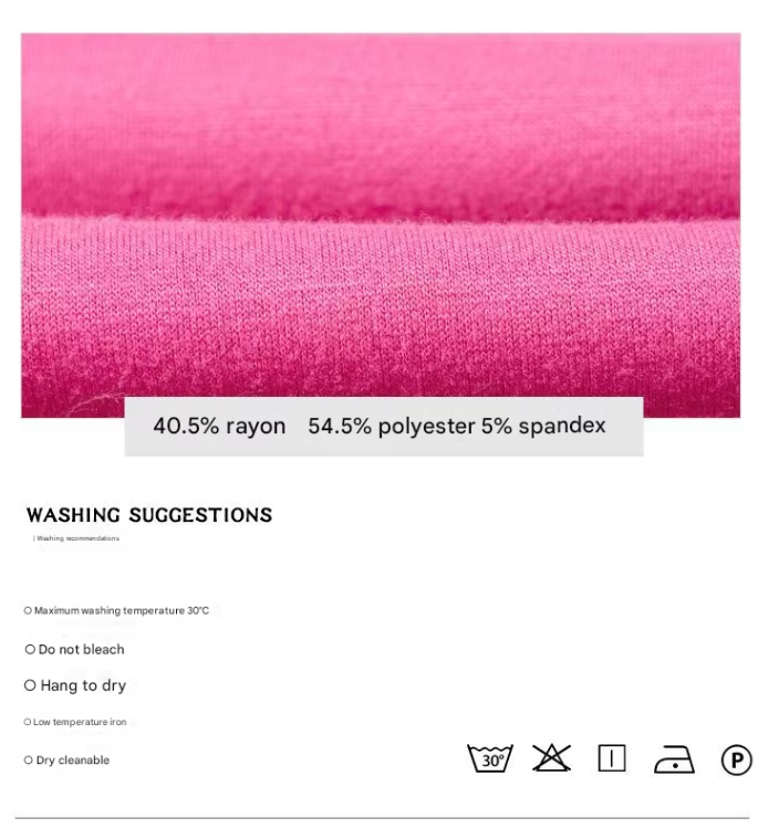 Fabric 54.5% Polyester 40.5% Rayon 5% Spandex